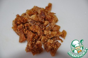 Мелко нарезаем вяленый инжир. Добавляем инжир в тесто, перемешиваем.