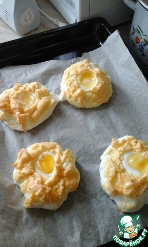Предлагаю удивить своих близких вкусным завтраком под названием «Яйца в облаках». На одну порцию для взрослого идет 2 яйца и три ломтика бекона. Оказывается, из самых привычных для нас продуктов можно сотворить такое чудо. Пышные яйца очень красиво смотрятся на тарелочке, а хрустящий бекон, ломтики тостов - так и хочется все поскорее скушать. Таким простым и интересным завтраком можно порадовать свою вторую половинку и любимых детишек. Поднимайте себе настроение с утра, приятного вам аппетита!
