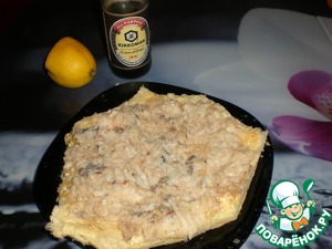 Выложить рыбу на лепешку из теста, обрезать края. иметь в виду, что будем придавать форму рыбы