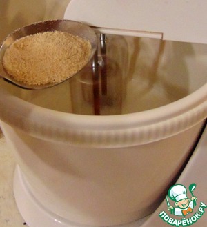 Яйца взбить в течении 5 минут, добавить постепенно коричневый сахар (тут нужен именно коричневый!)Продолжать взбивать с сахаром в течении 10 минут.