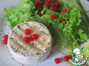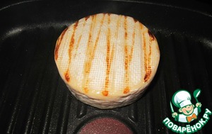 Рецепт приготовления сыра очень прост, на раскаленную сковороду гриль положить сыр и обжарить до румяных полосок. При готовности сыр Бри начинает как бы увеличиваться в размере "надуваться" значит что внутри сыр расплавился и готов к употреблению