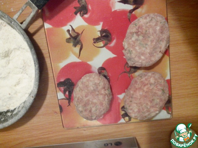 Для того, что бы котлеты не прилипали к сковороде я обваливаю их немного в муке.