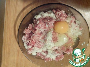 Добавляем лук, яйцо и мякиш к фаршу и перемешиваем.