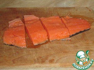 Тушку лосося филировать и нарезать на порционные кусочки