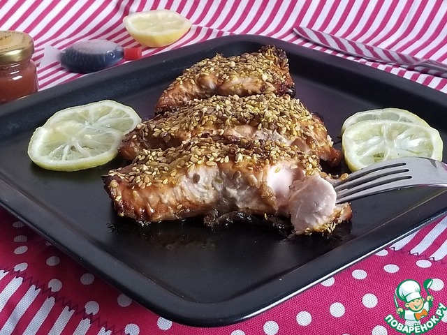 Рецепт «Запеченный лосось с кунжутом»: