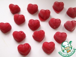 Далее влить красносмородиновый сок, хорошо перемешать и разлить в силиконовую формочку для конфет. Убрать в морозилку на 1 час минимум.
