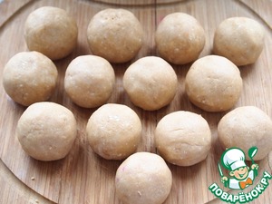 Скатать в шарик. Так проделать со всем остальным тестом и желе.