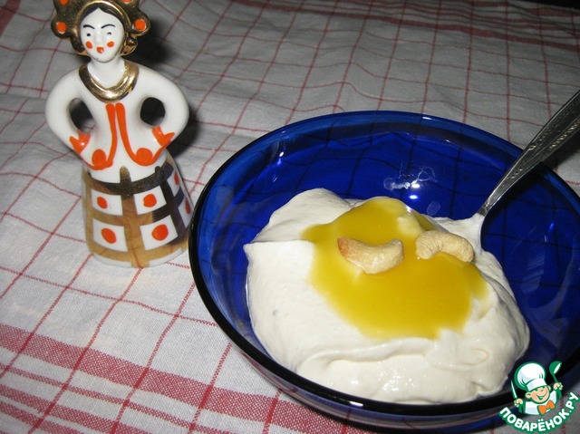 Творог у всех разный, поэтому соотношение творога и йогурта по количеству будет зависеть от этого. У меня творог домашний: жирный, влажный, - поэтому достаточно небольшого количества йогурта; если творог сухой - йогурта можно добавить больше.