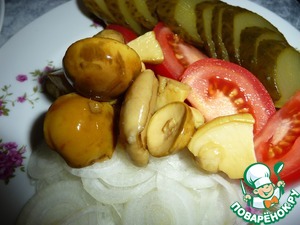 - Грибы (любые маринованные) — 2 шт