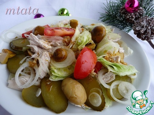 Салат из куриного филе с маринованными грибами