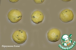 Разделить тесто на несколько равных частей. И скатать каждую часть в шарик. Данное количество теста я разделила на 8 частей.