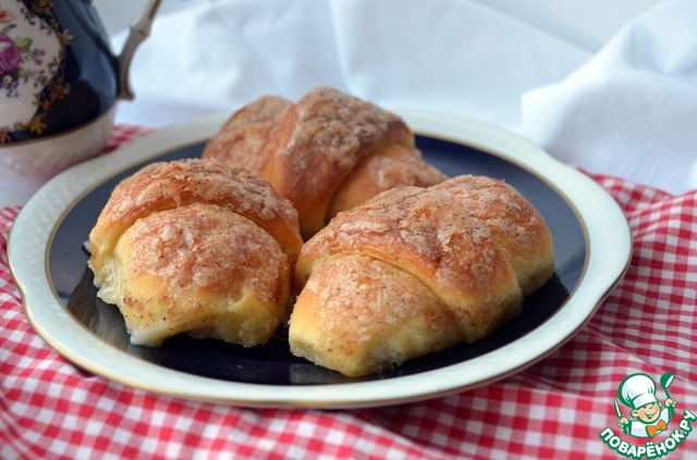 С Танюшей мы познакомились на сайте Поваренок! Танечка, милая и замечательная подруга, которую я очень люблю! Всегда придет на помощь и поможет советом. А ее замечательные рецепты и сказочные фото, удивляют до сих пор. Милая Танечка, прими от меня эти сладенькие круассанчики.Надеюсь, они тебе понравятся и порадуют.