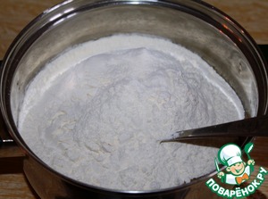 Всыпать 2 стакана муки. Тщательно перемешать.