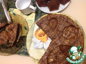 Торт охладить и украсить растопленным шоколадом. Или по вашему вкусу.