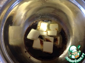 В кипятке растворяем кофе. Масло комнатной температуры добавляем в горячий кофе. Надо растопить его. Влить молоко.
