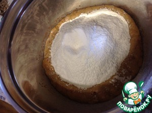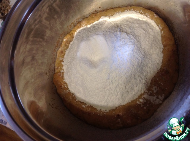 Полученную смесь соединяем с просеянной мукой. И вымешиваем тесто не менее 10минут. Очень тщательно.