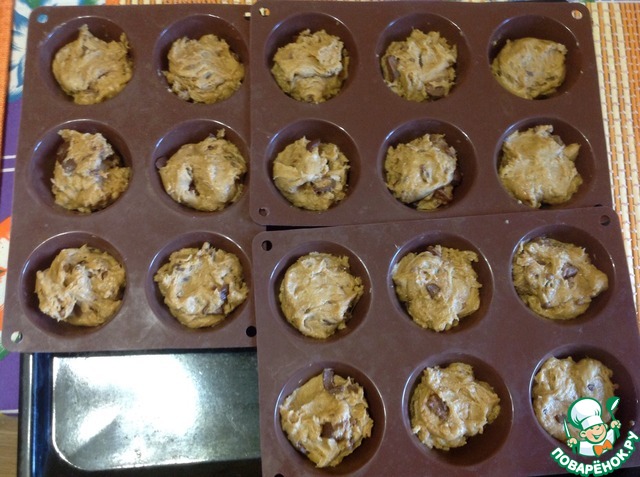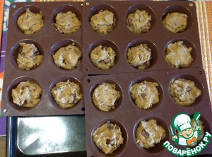 Приготовленным тестом заполняем до половины небольшие формочки смазанные маслом, (у меня силикон я не смазывала).