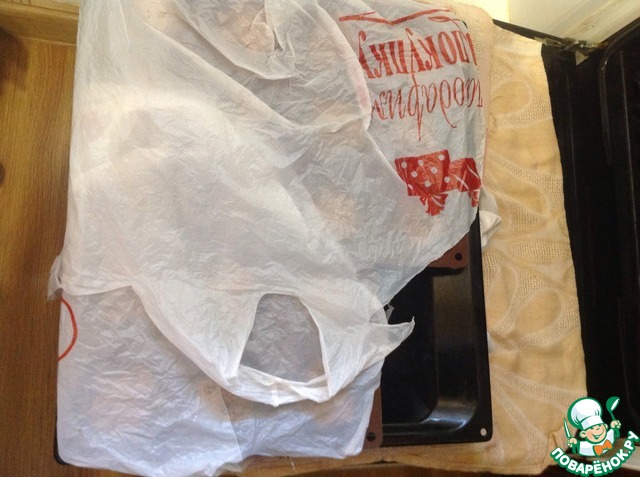 Накрываем пищевой пленкой (кончилась пленка, вышла из положения так) и ставим в теплое место на один час.