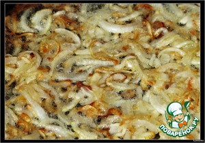 Обжариваем лук, до золотистого цвета, на сливочном масле, добавляем сахарный песок, перемешиваем, заливаем сметаной и увариваем. Если соус получается жидким добавляем щепотку муки, тщательно перемешиваем. -