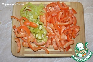- Перец болгарский (разных цветов - у меня зеленый и красный ) — 3 шт