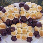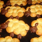 Сформировать из шариков туловище, а из шоколадного теста — голову, ухо, хвост и ноги. С помощью деревянной шпажки обозначьте глаза, рот, копыта овечки. У меня получилось 6 овечек размером с блюдце. Овечек собираете сразу на противне.