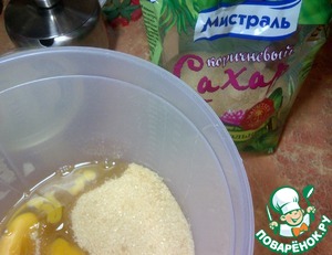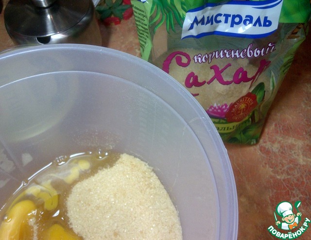 Смешать два яйца с коричневым сахаром ТМ Мистраль.