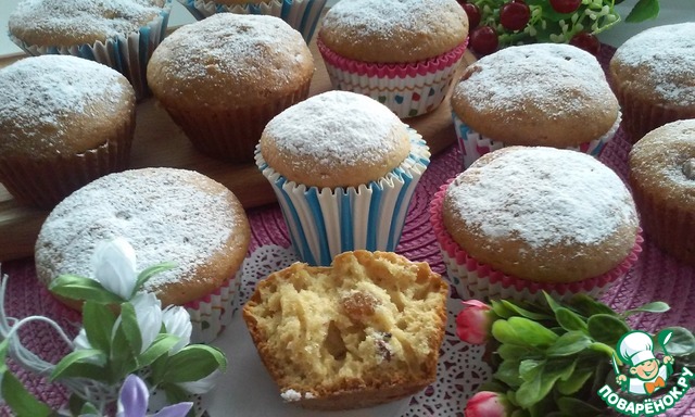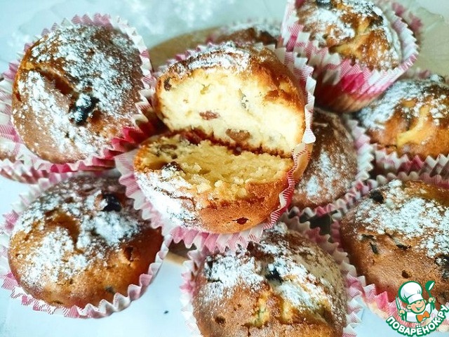 Рецепт «Кексы творожные с вишней или изюмом»: