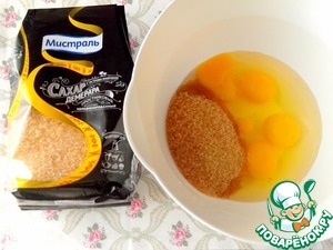 • Яйца хорошо взбить с сахаром. Я использовала тростниковый нерафинированный сахар Демерара ТМ "Мистраль".