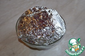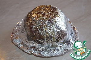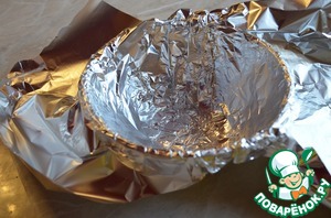 Далее нам понадобится миска, в нее в 2 слоя выложить фольгу, чтобы края свисали.
