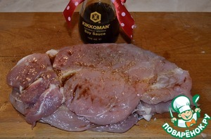 Замариновать в соевом соусе «Киккоман», слегка присолить.