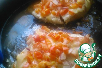 Ананасы выложить на мясо, завернуть свисающие крася мяса.