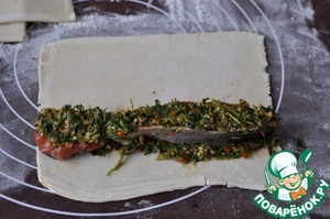 Рецепт «Лосось в слоеном тесте с вялеными томатами»: