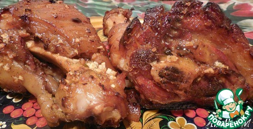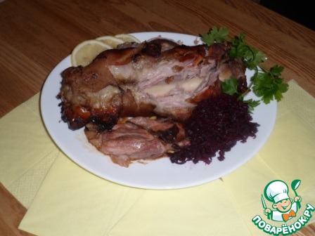 Отправляем рульку в духовку с температурой 180 градусов и запекаем 40-50 минут. Не забываем поливать приготовленным соусом каждые 7-10 минут!!!