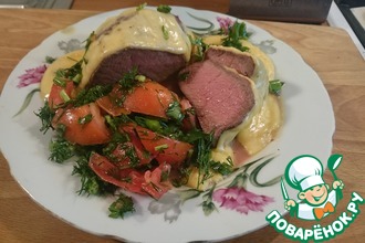 Мясо восхитительно нежное. Соус из овощей - бесподобный. Но больше всего понравился вкус картофеля. Хотя я не клала грибы, но витал сильный грибной дух.