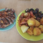 Приготовила я вчера сие чудо!!! В роли грудинки у меня был кусочек конины от ноги, мяско не самое мягкое)) все делала по рецепту, только мясо замариновала в специях и горчице накануне вечером) кусочек был около 1 кг, запекала чуть больше 2 часов. Получилось очень вкусно, мясо на удивление было мягким, и да кусочек мяса, картошечка и с соусом мммммм это и правда блаженство!!! Однозначно в кк и буду готовить ещё!!! Фото к сожалению не успела сделать муж пришёл голодный с работы, не до фото было))) Спасибо за рецепт!!!!