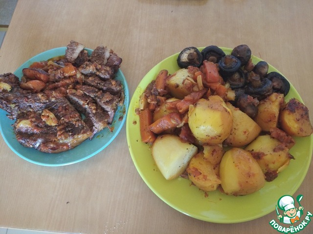 Очень хороший рецепт. Картофель, грибы не добавляла (в форму уже не поместились). Вместо вина, сбрызнула бальзамическим уксусом. Остальное все по рецепту. Мясо получилось отличное. Вот хочу в следующий раз в мультиварке попробовать, наверное будет не хуже. Автору большое спасибо.