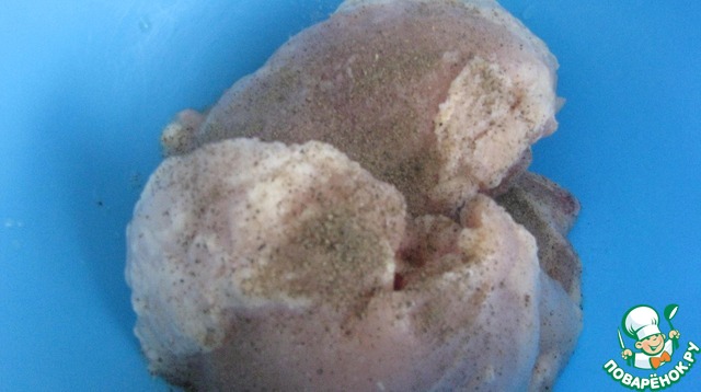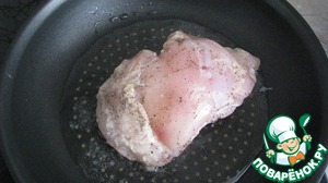 Обжарить грудки на растительном масле, не до готовности. Мясо снять со сковороды и охладить.