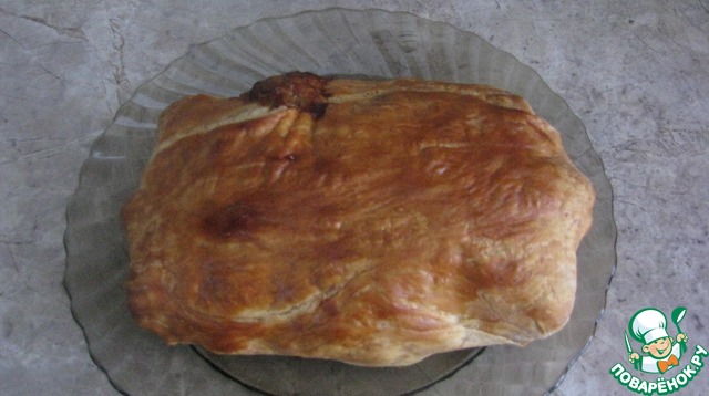 Укладываем на смазанный противень швом в низ. Обмазываем молочно-желтковой смесью и отправляем в разогретую духовку. Выпекаем 20-25 минут при 180-200гр.