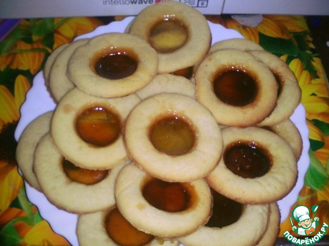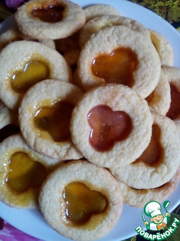 Духовку разогреваем до 180 гр. С и ставим печенье выпекаться на 12 мин. карамель в это время растает и заполнит все окошечки.
