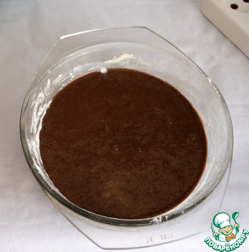 В тесто вылить кофейно-шоколадную массу, перемешать.