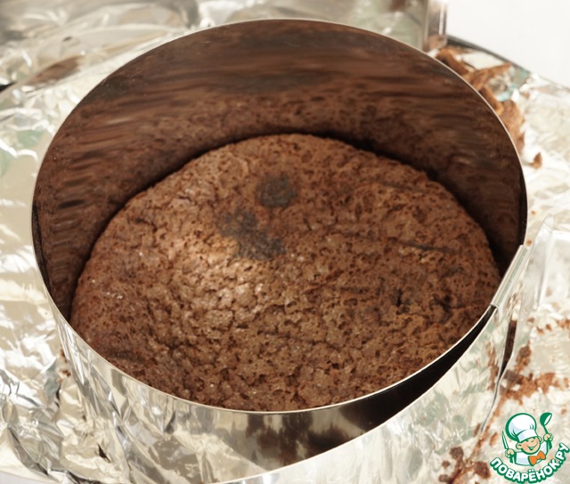 Вокруг коржа поставить кулинарное кольцо (я корж как раз кольцом чуть подравняла) и вылить сверху мятный мусс. Дать застыть. (простите, этот шаг забыла сфоткать)