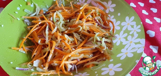 Салат из моркови и огурцов понравится любителям остренького. Из самых обычных продуктов за несколько минут можно приготовить настоящее корейское блюдо - ароматное и необычайно вкусное. Главное - не забыть приправы и соевый соус "Kikkoman".