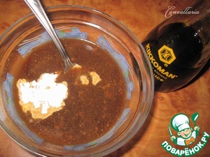 В миске соединить воду, соевый соус, имбирь, сахар, крахмал.