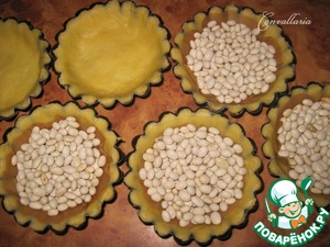 В каждую формочку вложить кружочки бумаги для выпечки и насыпать груз (фасоль). -