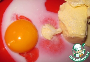 Мягкое сливочное масло, желток, сахар, молоко, соль растереть в однородную массу.