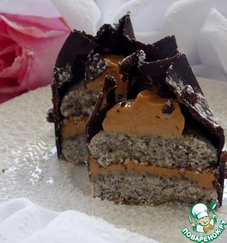 Этот рецепт - по мотивам известного мастера – Луки Монтерсино. Нет сомнений в том, что все блюда Луки обладают не превзойденной изысканностью, неповторимым вкусом и оригинальностью, этот рецепт случайно попался мне на глаза, и я без колебаний решила воспользоваться идеей спрятать в шоколадном мешочке, печенья с кремом. Тем более появился повод это сделать. Это пирожное состоит из двух частей, печенье с чёрным кунжутом, соединённые кремом и шоколадный мешок укрывающий их. Печенье очень нежное и вкусное, можно сделать его как самостоятельное, без шоколада, но шоколад и крем из варенной сгущёнки, в сочетании с кунжутным печеньем, это райское наслаждение, попробуйте приготовить может и вам оно понравится.