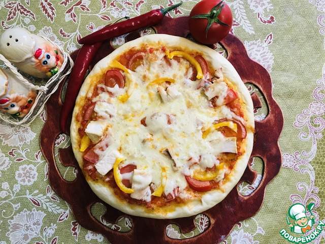 Предлагаю легкую в приготовлении и одновременно вкусную пиццу с куриной грудкой.