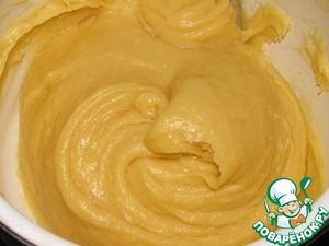 Снять кастрюлю с огня и слегка остудить тесто. Затем, тщательно вымешивая, вбить по одному яйца.