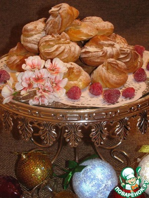 Мне очень хочется к Новому году сделать как можно больше приятного и доброго для всех друзей и просто замечательных поварят, с которыми я общаюсь уже более 5 лет. К сожалению не хватает времени, чтобы сделать сладкий подарок для каждого, а очень бы хотелось. Поэтому я приготовила эти профитроли, чтобы их хватило для всех моих любимых поварят, имена которых я приведу в конце рецепта.