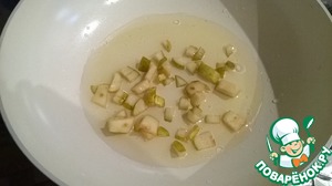 Кусочки груши обжарить в подсолнечном масле. Груши придадут маслу особый аромат. Кусочки не должны распасться.